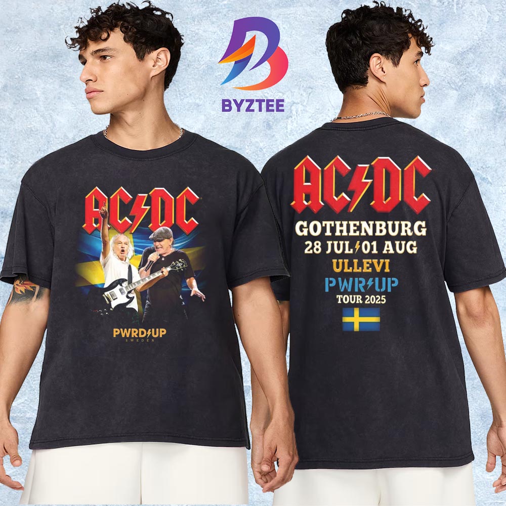 Byztee: ACDC Gothenburg 2025 Exclusive Event Tee PWR UP Tour At Ullevi Stadium In Sweden On July 28 And August 1 2025 Two Sided Unisex T-Shirt Introduction: