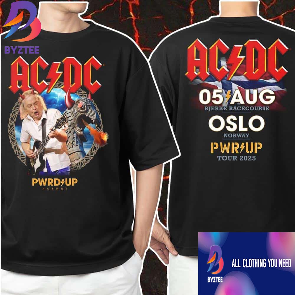 Byztee: ACDC PWR UP Tour Norway 2025 Oslo PWR UP Event Tour T-Shirt At Bjerke Racecourse On August 5th 2025 Artwork By Skurktur Merch Two Sides Classic Tee Introduction: