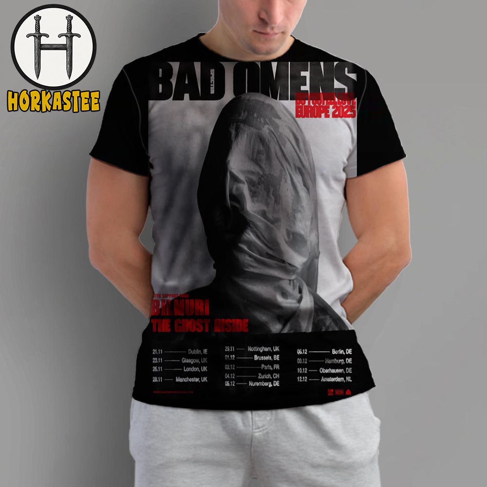 This product Bad Omens Do You Feel Love Europe 2025 Poster Dates List With Support From Bilmuri The Ghost Inside All Over Print Shirt was designed by Byztee. Bad Omens