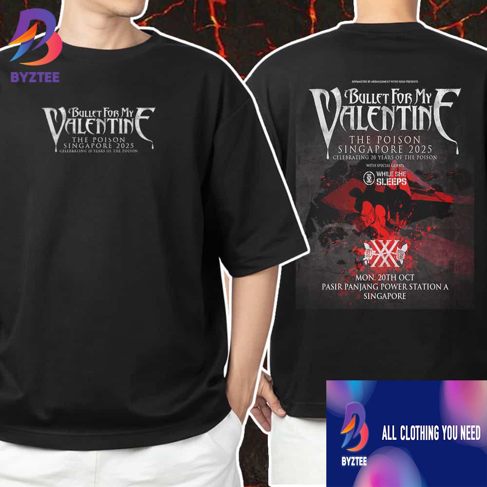 Bullet For My Valentine The Poison Singapore 2025 Tour 20th Anniversary On 20 October 2025 At Singapore With While She Sleeps Two Sided Unisex T-Shirt