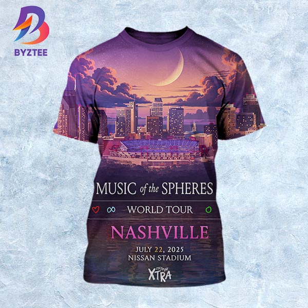 This product Coldplay Nashville 2025 Music Of The Spheres World Tour Poster At Nissan Stadium On July 22 2025 All Over Print Shirt was designed by Byztee. Coldplay