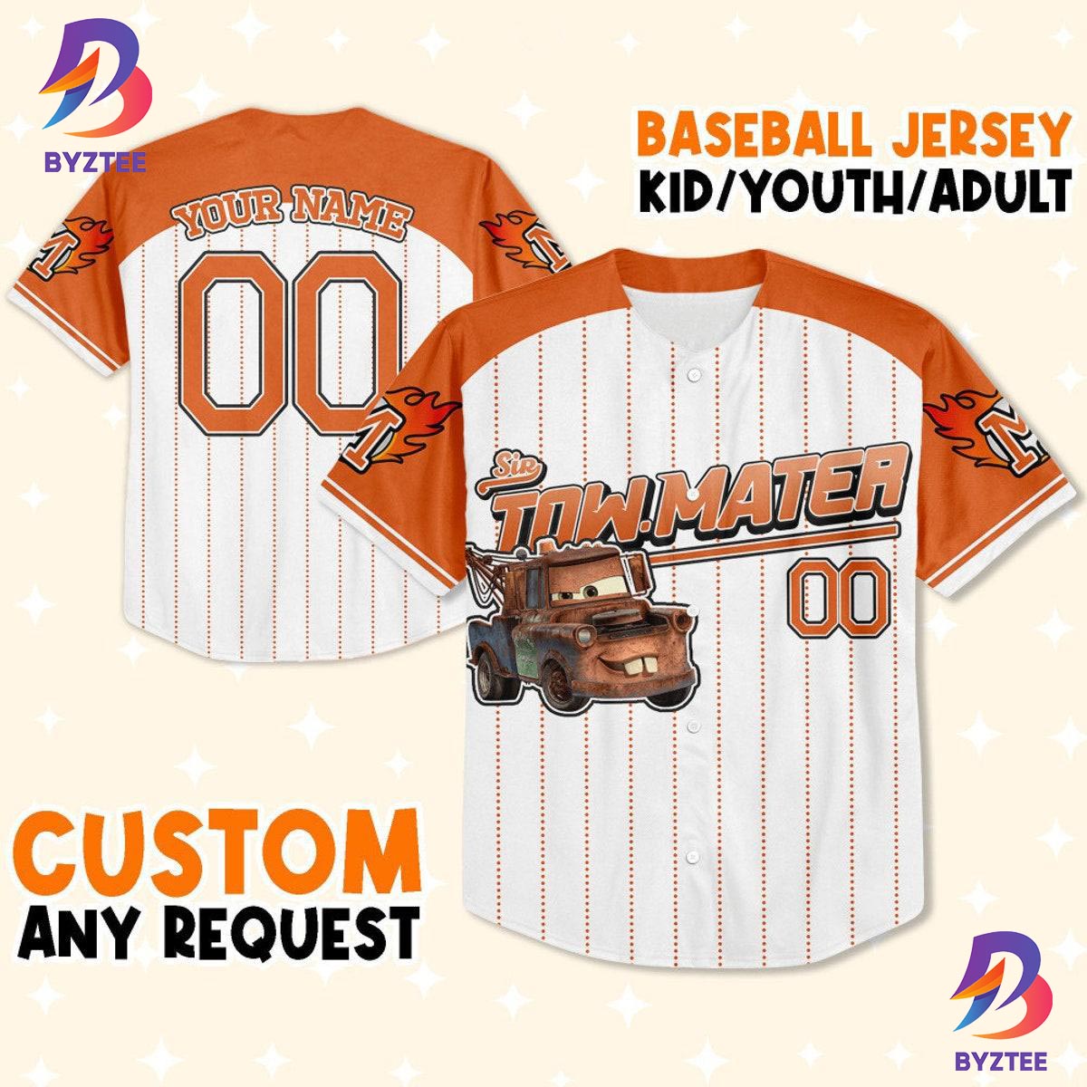 Details about this: Custom Cars Mater Orange Cool Custom Text Lightning Mcqueen Baseball Jersey