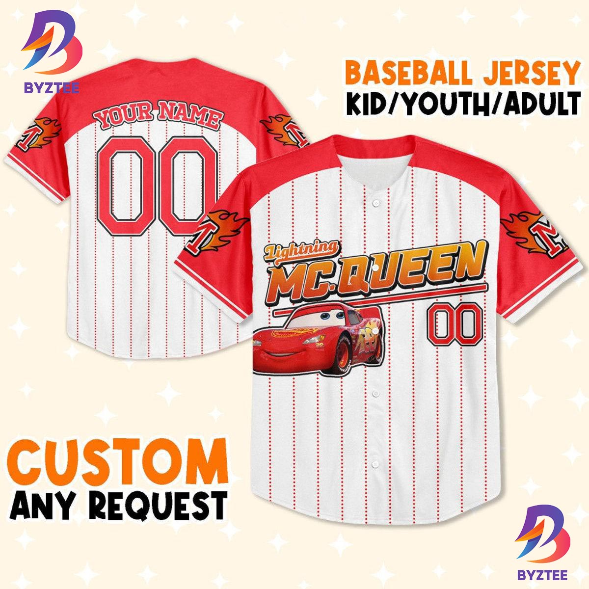 Custom Cars Mcqueen Red Curious Lightning Mcqueen Baseball Jersey