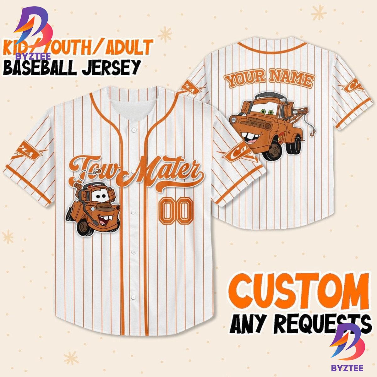 Details about this: Custom Disney Cars Lightning Tow Mater Baseball Jersey