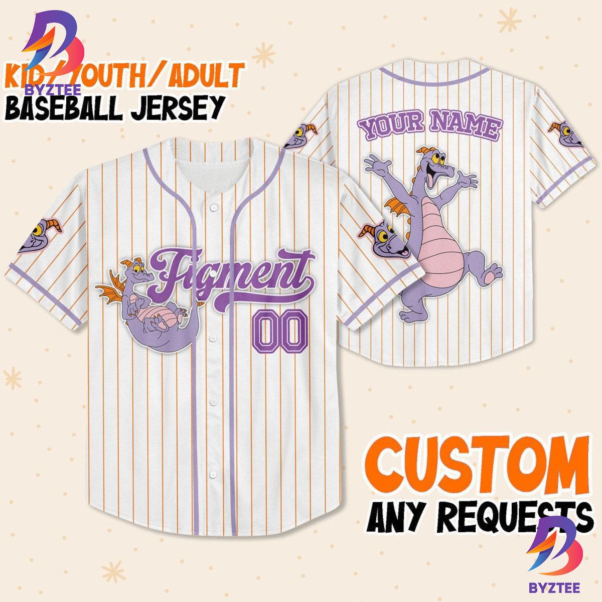 Byztee: Custom Disney Figment Little Spark Simple Stripe Baseball Jersey Introduction: