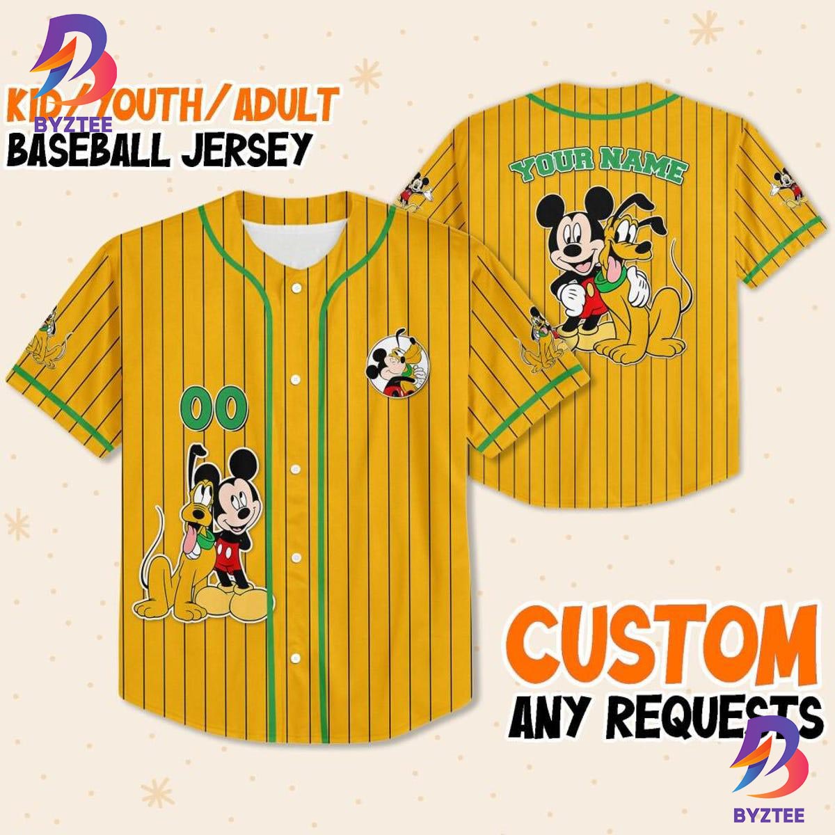 Byztee: Custom Disney Mickey And Pluto Yellow Baseball Jersey for Kids And Adults Introduction: