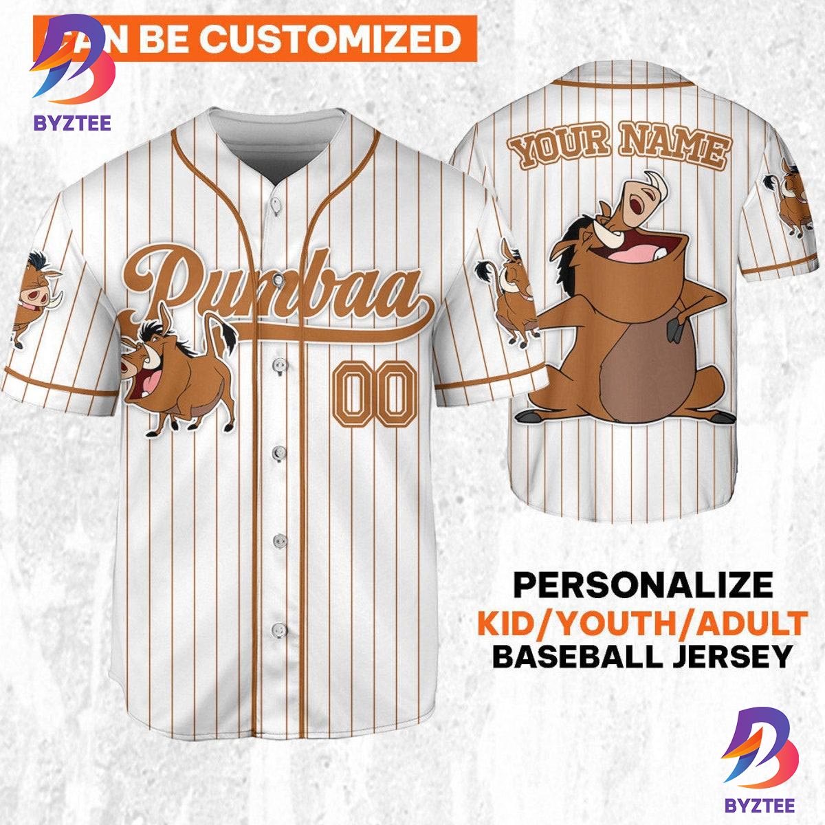 Custom Disney The Lion King Pumbaa Simple Stripe Baseball Jersey
