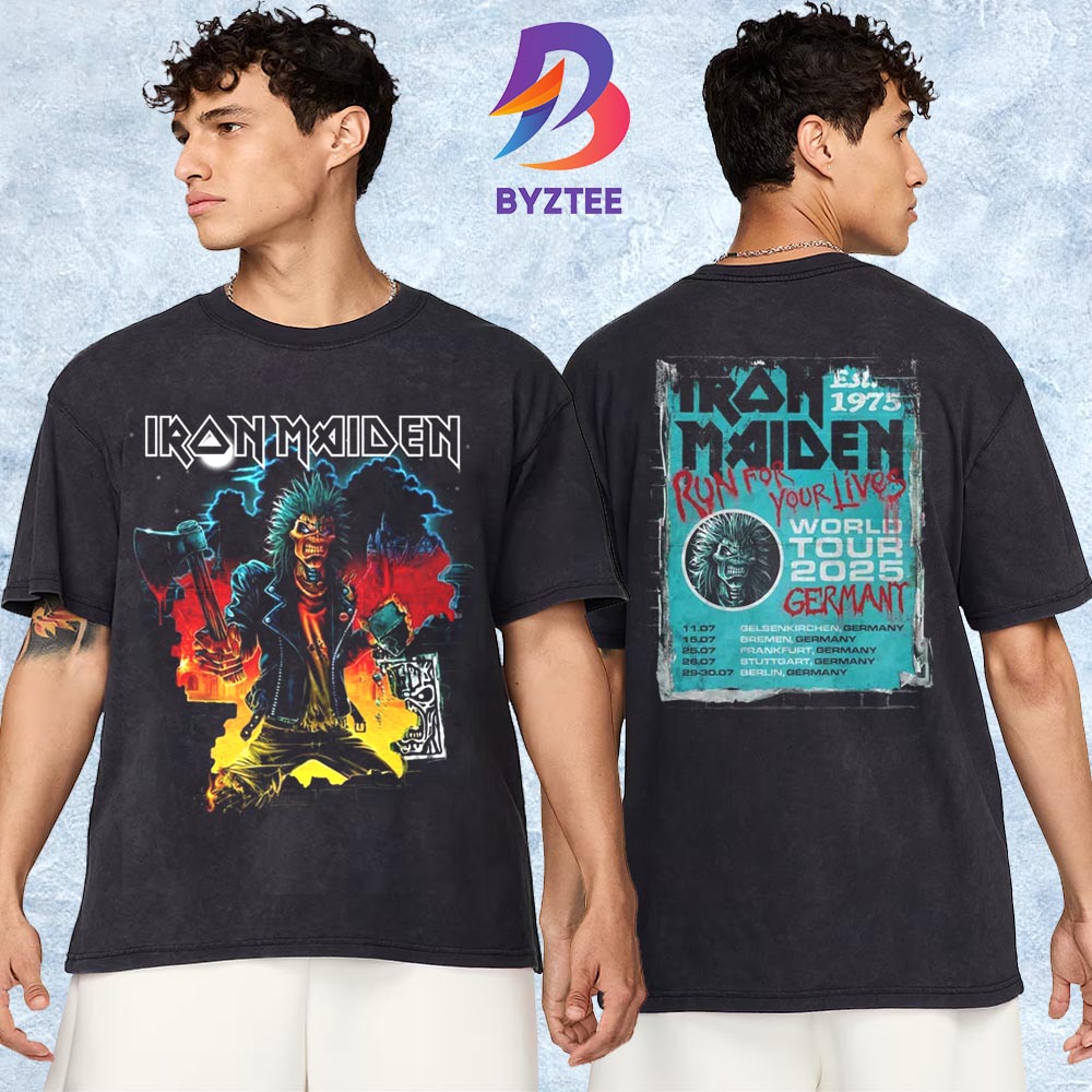 Byztee: Iron Maiden Run For Your Lives World Tour 2025 Germany Tour Exclusive Tee Schedule Dates And Cities List On July 2025 Two Sided Unisex T-Shirt Introduction: