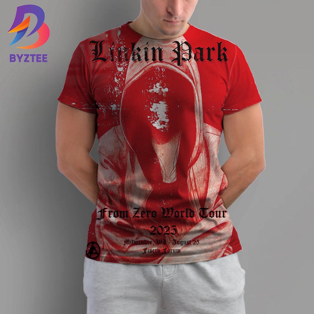 This product Linkin Park Milwaukee 2025 From Zero World Tour Poster At Fiserv Forum In Wisconsin On August 25 2025 AOP Shirt was designed by Byztee. Linkin Park