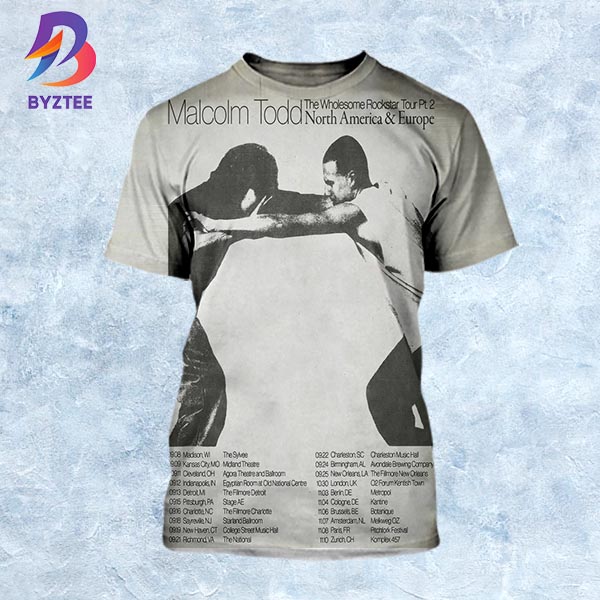 This product Malcolm Todd 2025 The Wholesome Rockstar Tour Pt 2 North America And Europe Dates List All Over Print Shirt was designed by Byztee. Malcolm Todd