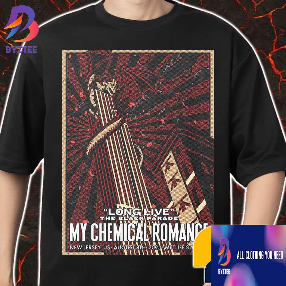 Byztee: My Chemical Romance Long Live The Black Parade Event Poster August 8th 2025 At MetLife Stadium New Jersey US Artwork By Edgar Jimenez Merch Unisex T-Shirt Introduction: