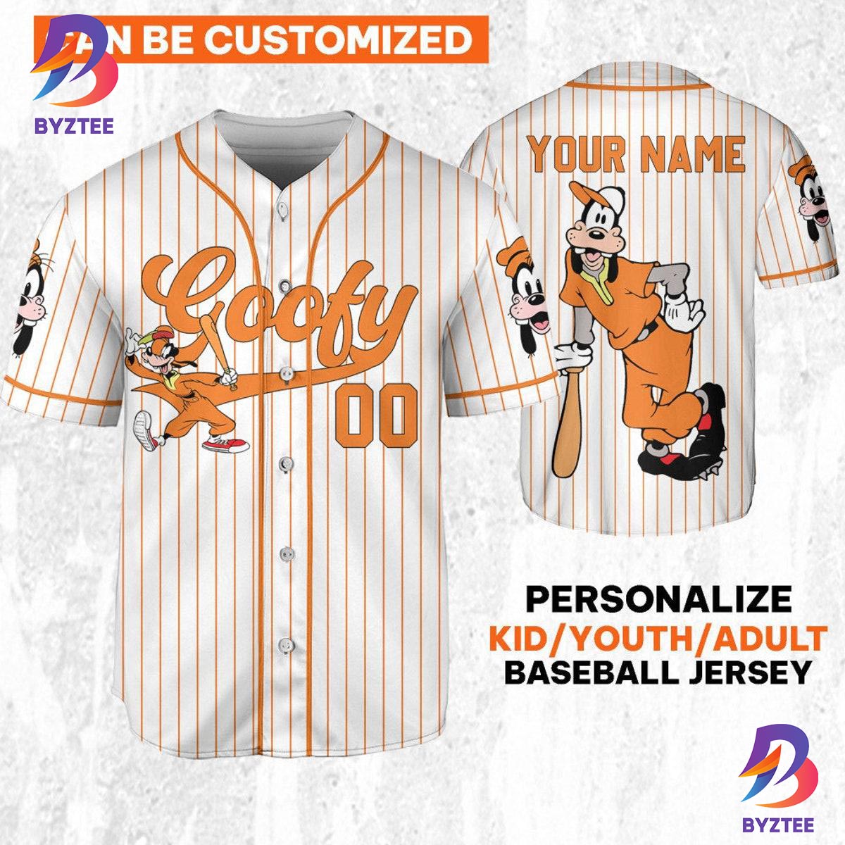 Personalize Disney Goofy Play Baseball Orange Baseball Jersey