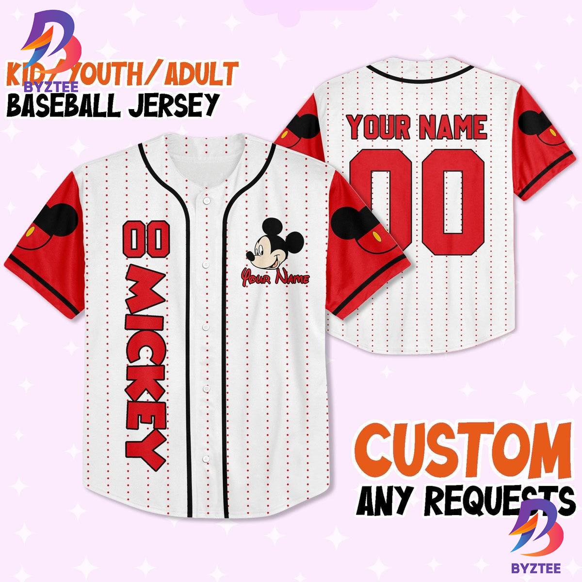 Personalize Disney Mickey Symbol Red Baseball Jersey