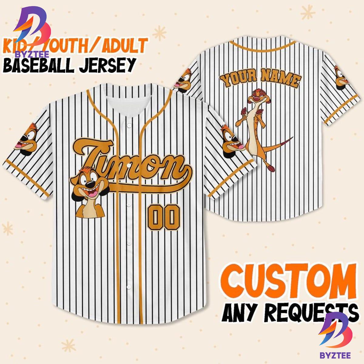 Byztee: Personalize Disney The Lion King Timon Striped Baseball Jersey Introduction: