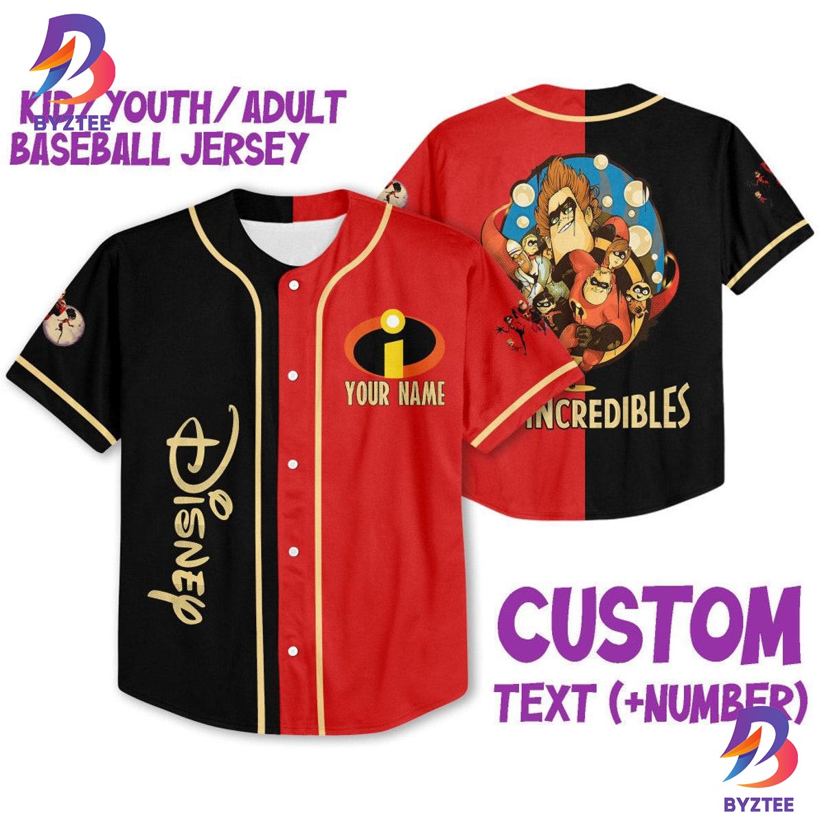 Personalized Disney The Incredibles Characters Awesome Baseball Jersey