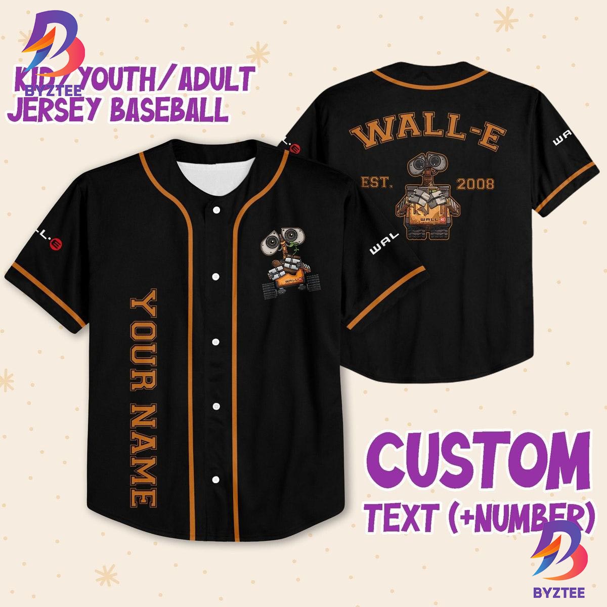 Personalized Disney Wall E Black Color Baseball Jersey