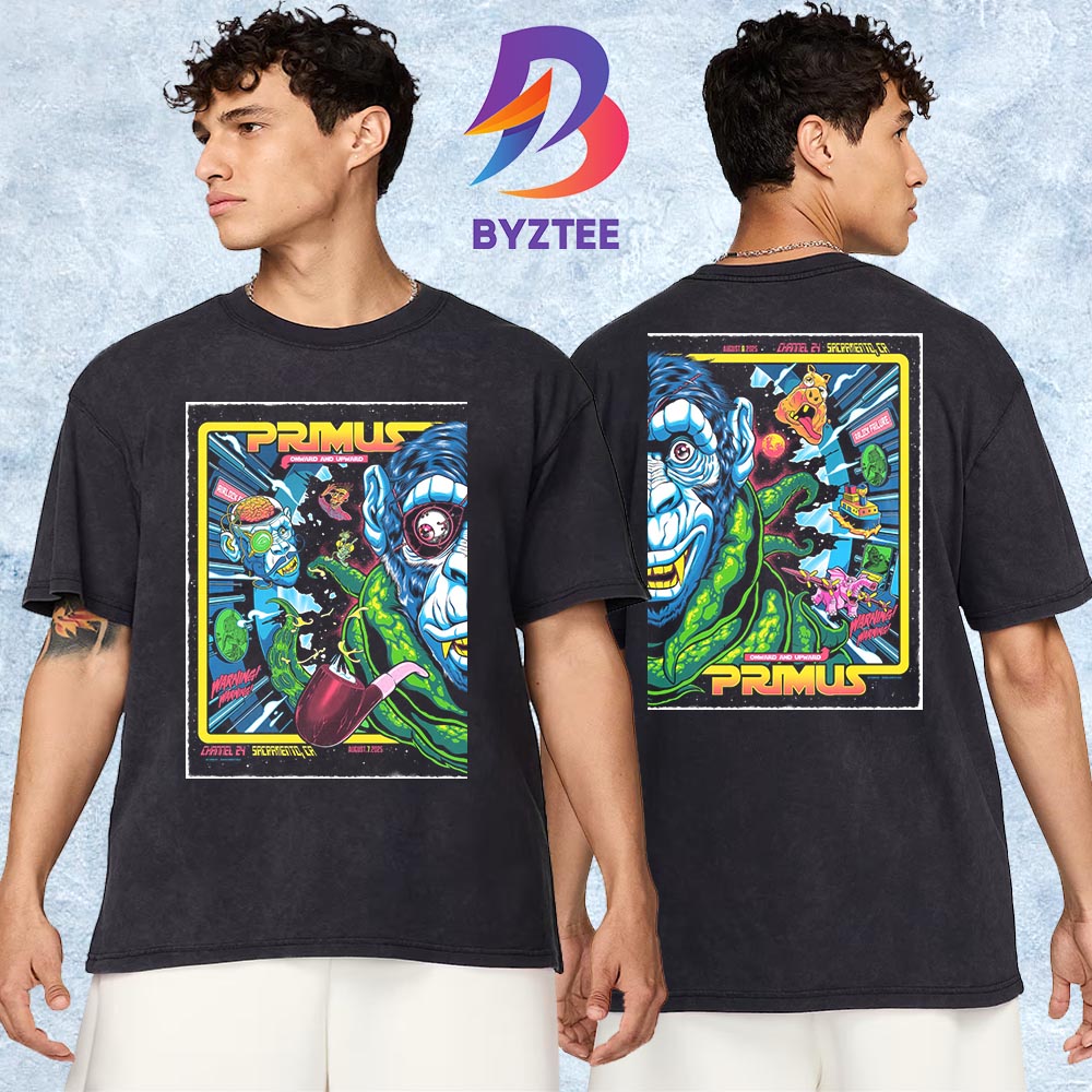 Byztee: Primus 2025 Sacramento Combined Poster 2 Night Onward And Upward Summer Tour At Channel 24 In California On August 7 2025 Two Sided Unisex T-Shirt Introduction: