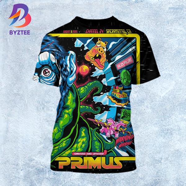This product Primus 2025 Sacramento Night 2 Poster Onward And Upward Summer Tour At Channel 24 In California On August 8 2025 All Over Print Shirt was designed by Byztee. Primus