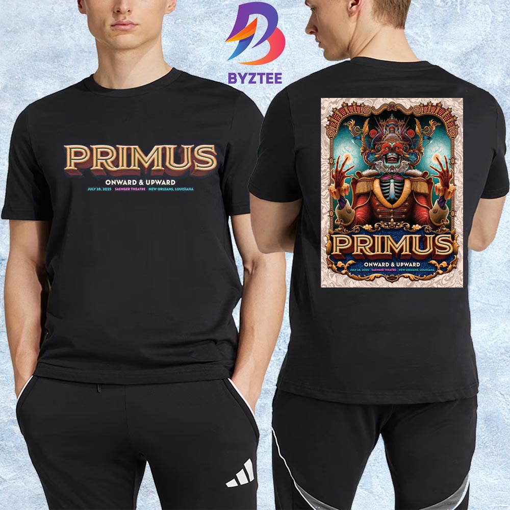 Details about this: Primus New Orleans 2025 Onward And Upward Tour Poster Tonight Show At Saenger Theatre In Louisiana On July 28 2025 Two Sided Essential T-Shirt