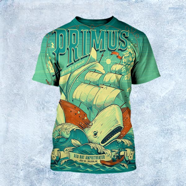 Primus Raleigh 2025 Poster Onward And Upward At Red Hat Amphitheater In North Carolina On July 23 2025 All Over Print Shirt Product Feature: