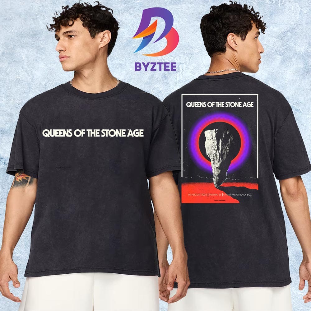 Details about this: Queens of the Stone Age Tallinn Estonia 2025 Poster The End Is Nero World Tour At Unibet Arena Black Box On August 2 2025 Two Sided Essential T-Shirt