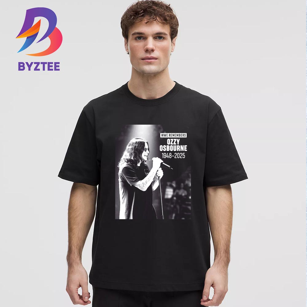 Details about this: WWE Remembers Ozzy Osbourne 1948-2025 Music Icon And WWE Hall Of Famer Essential T-Shirt